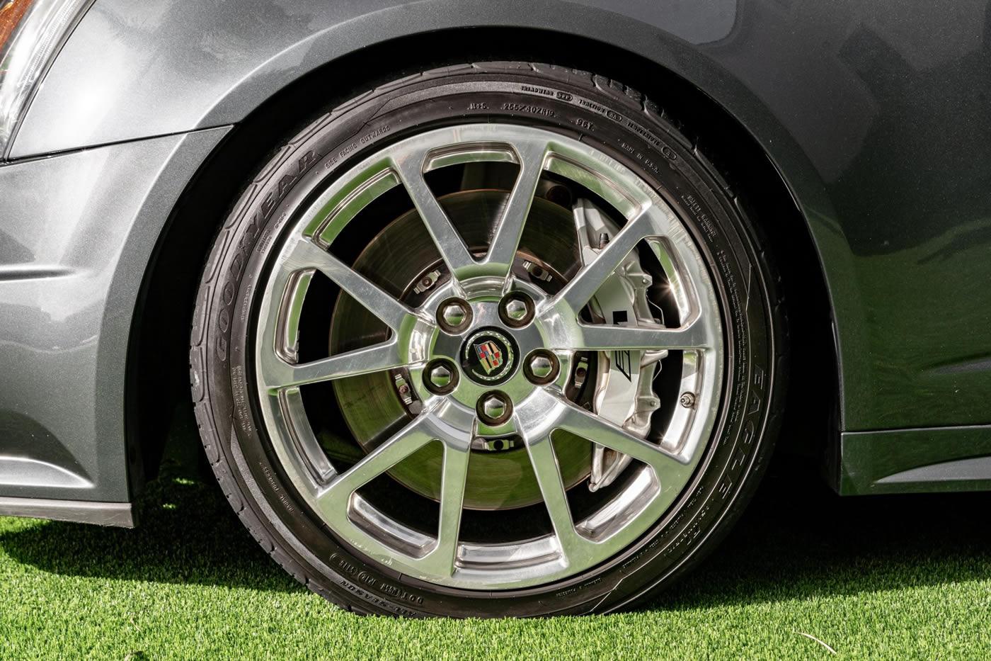 This 2011 Cadillac CTS-V coupe is finished in Thunder Gray Chromaflair over Ebony leather and microsuede interior. Power is from a supercharged 6.2-liter V8 mated to a six-speed automatic transmission. The supercharged 6.2-liter V8 was factory rated at 556 horsepower and 551 lb-ft of torque.