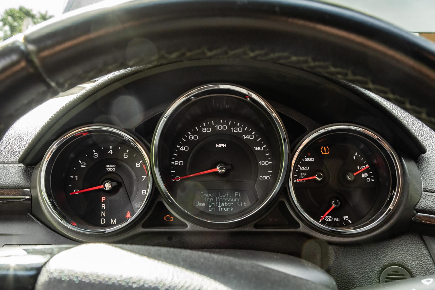 This 2011 Cadillac CTS-V coupe is finished in Thunder Gray Chromaflair over Ebony leather and microsuede interior. Power is from a supercharged 6.2-liter V8 mated to a six-speed automatic transmission. The supercharged 6.2-liter V8 was factory rated at 556 horsepower and 551 lb-ft of torque.