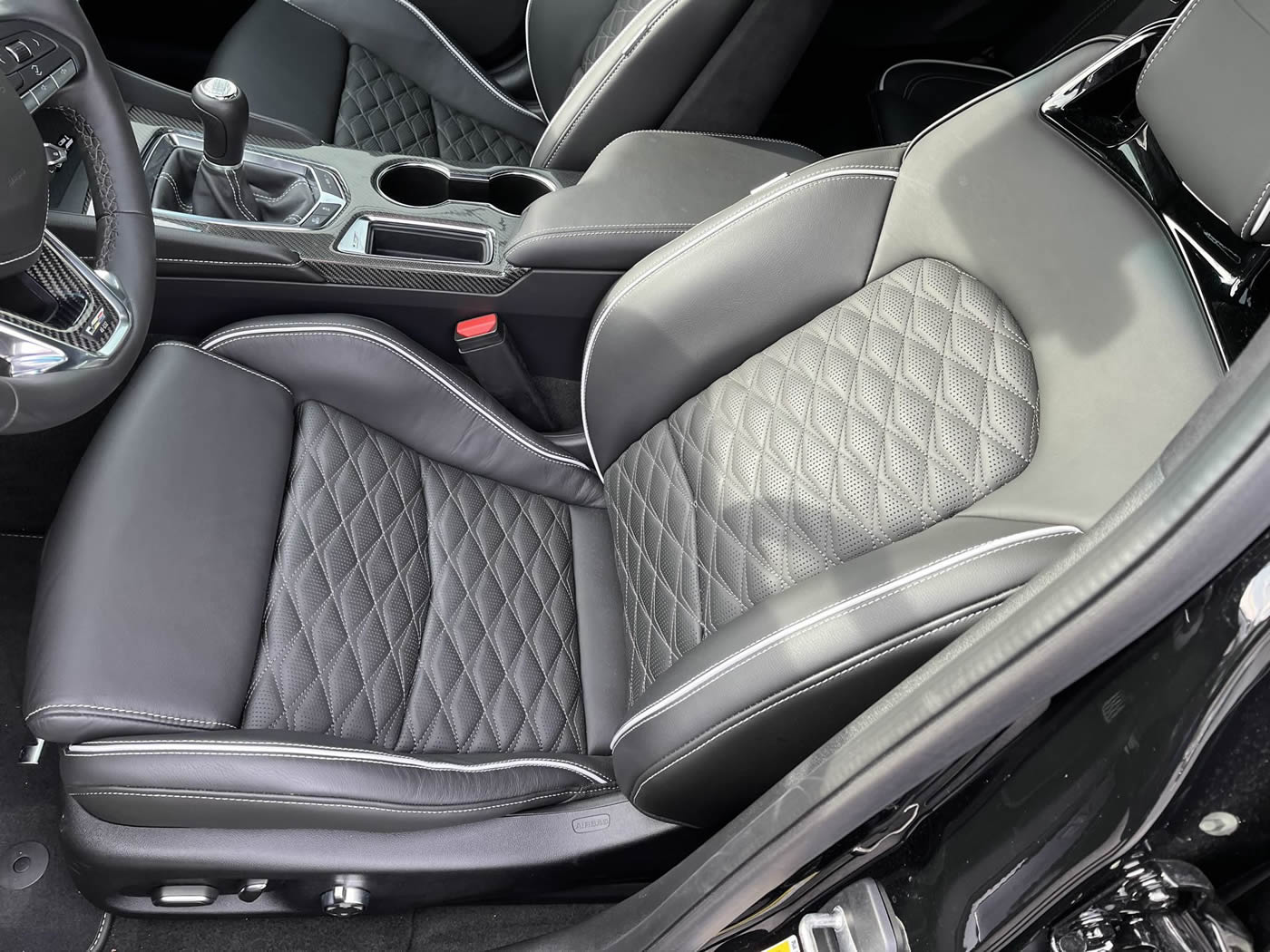 This 2022 Cadillac CT4-V Blackwing is finished in Black Raven with a Jet Black interior. Power comes from a twin-turbocharged 3.6-liter V6 engine, rated at 472 horsepower and 445 lb-ft of torque. Output is sent to the rear wheels via a 6-speed manual transmission.