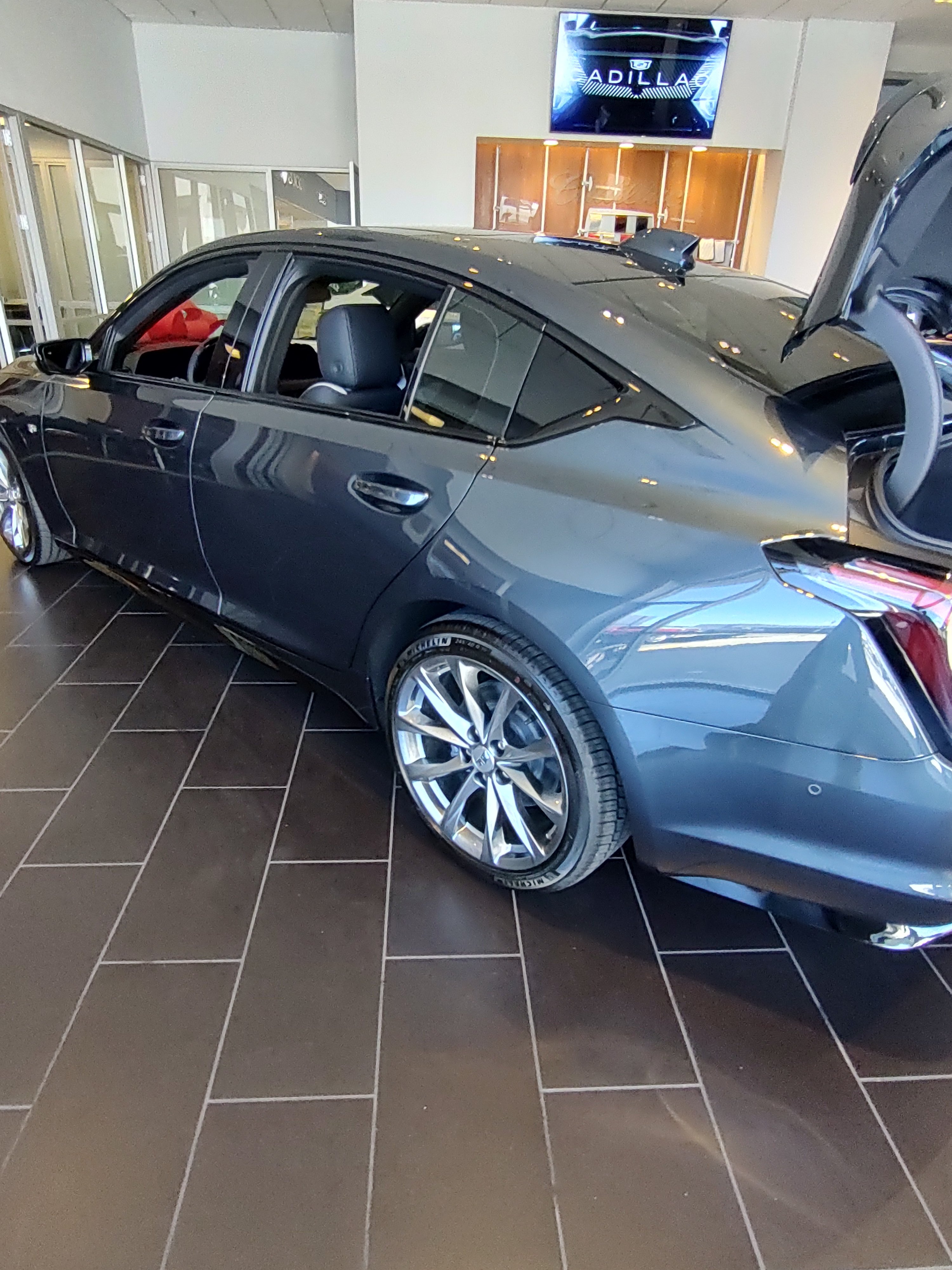 I was at my dealer yesterday poking around. They have a Deep Space Metallic CT5 Sport on the floor. Here's a pic for all of you. To me, it's a dark gray, although it has some gold metallic flakes in it. I'd like to see it in the sun.