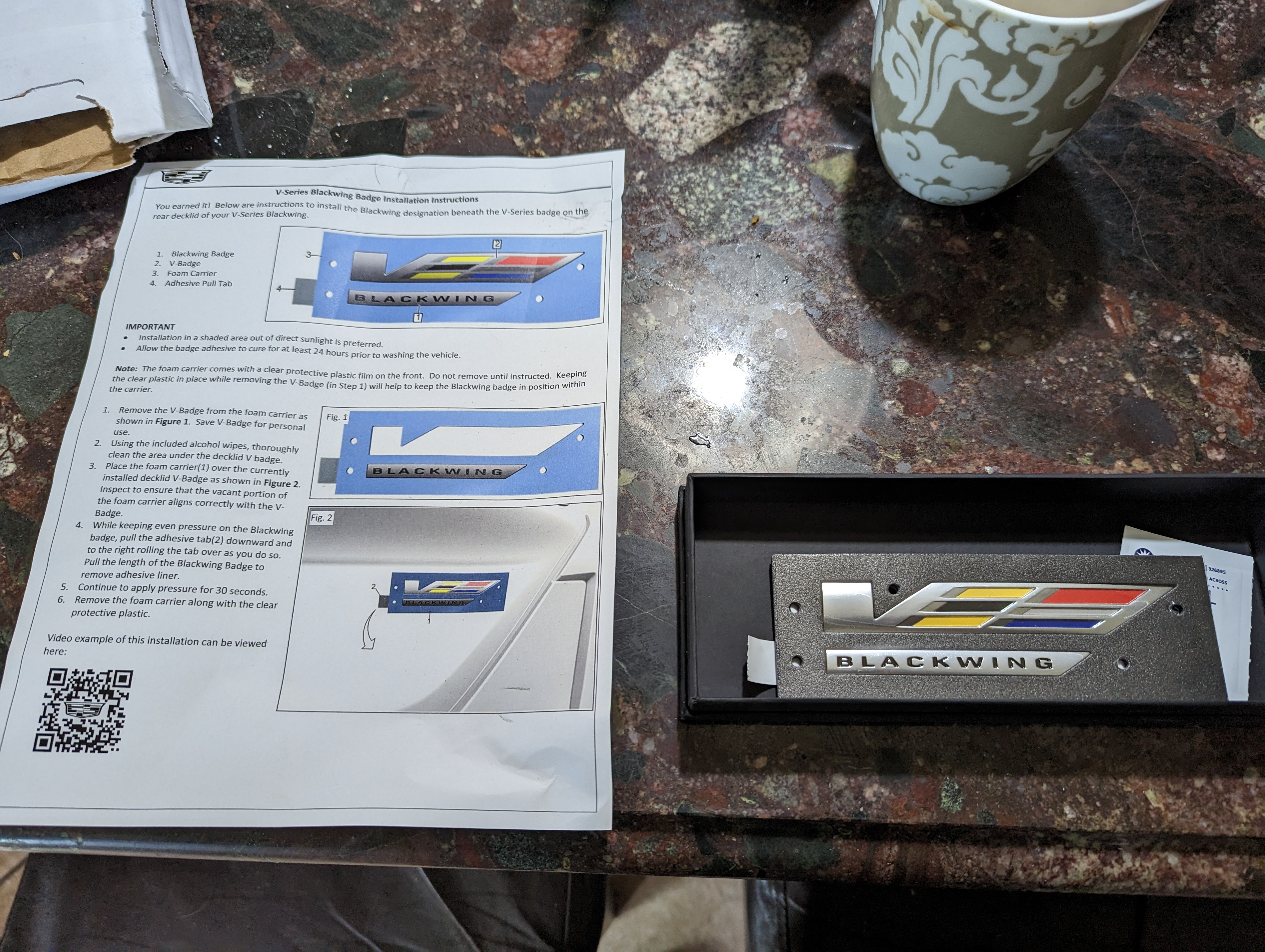 The BlackWing badge ruins the symmetry of the rear. I think it's going near the glovebox right side edge, right above it. The extra V will go on a TapOut carbon intake or Carbon engine cover.