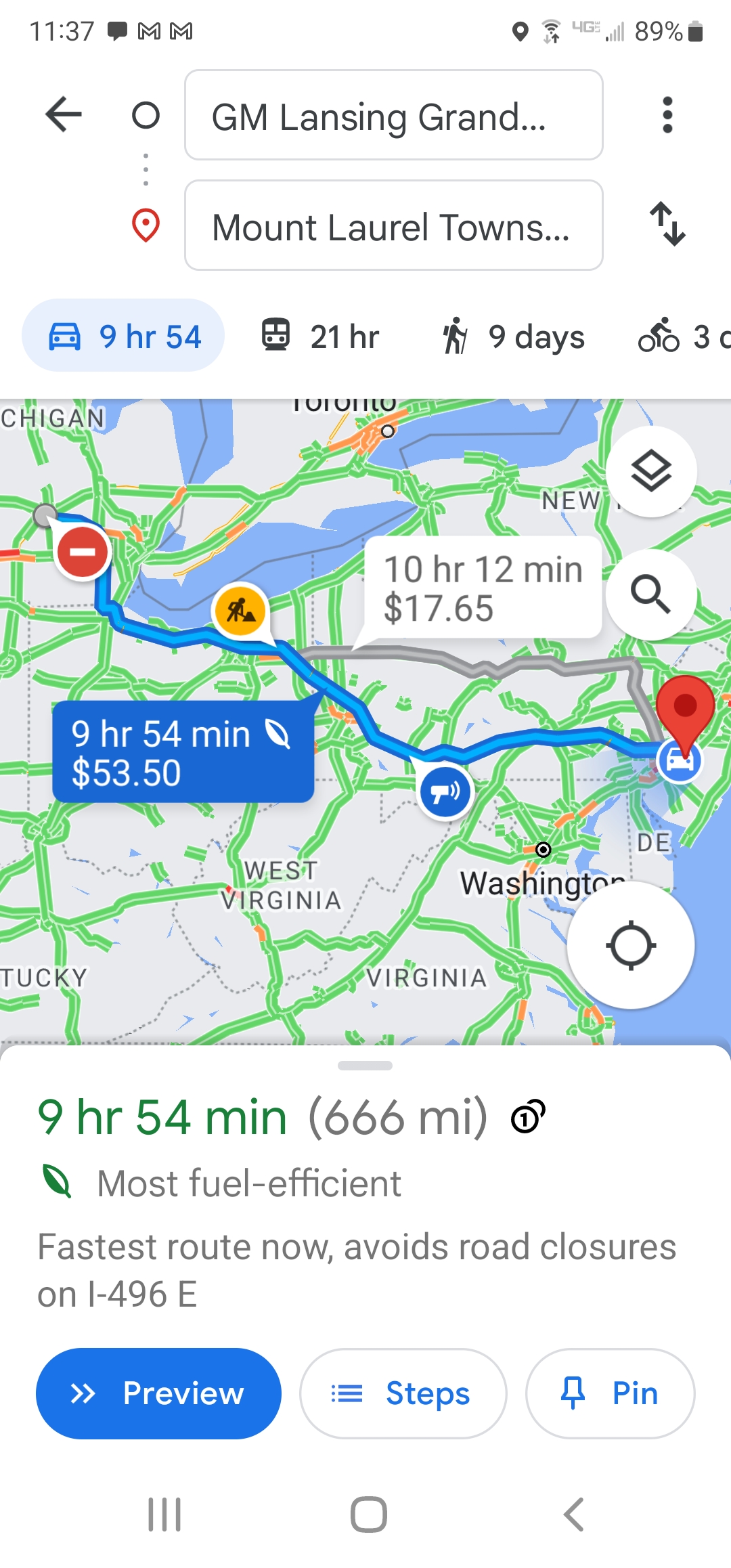 See your problem is they are trying to avoid that $17.65 in tolls. They're going to loop you around a few states on some back roads. Just tack on a few months