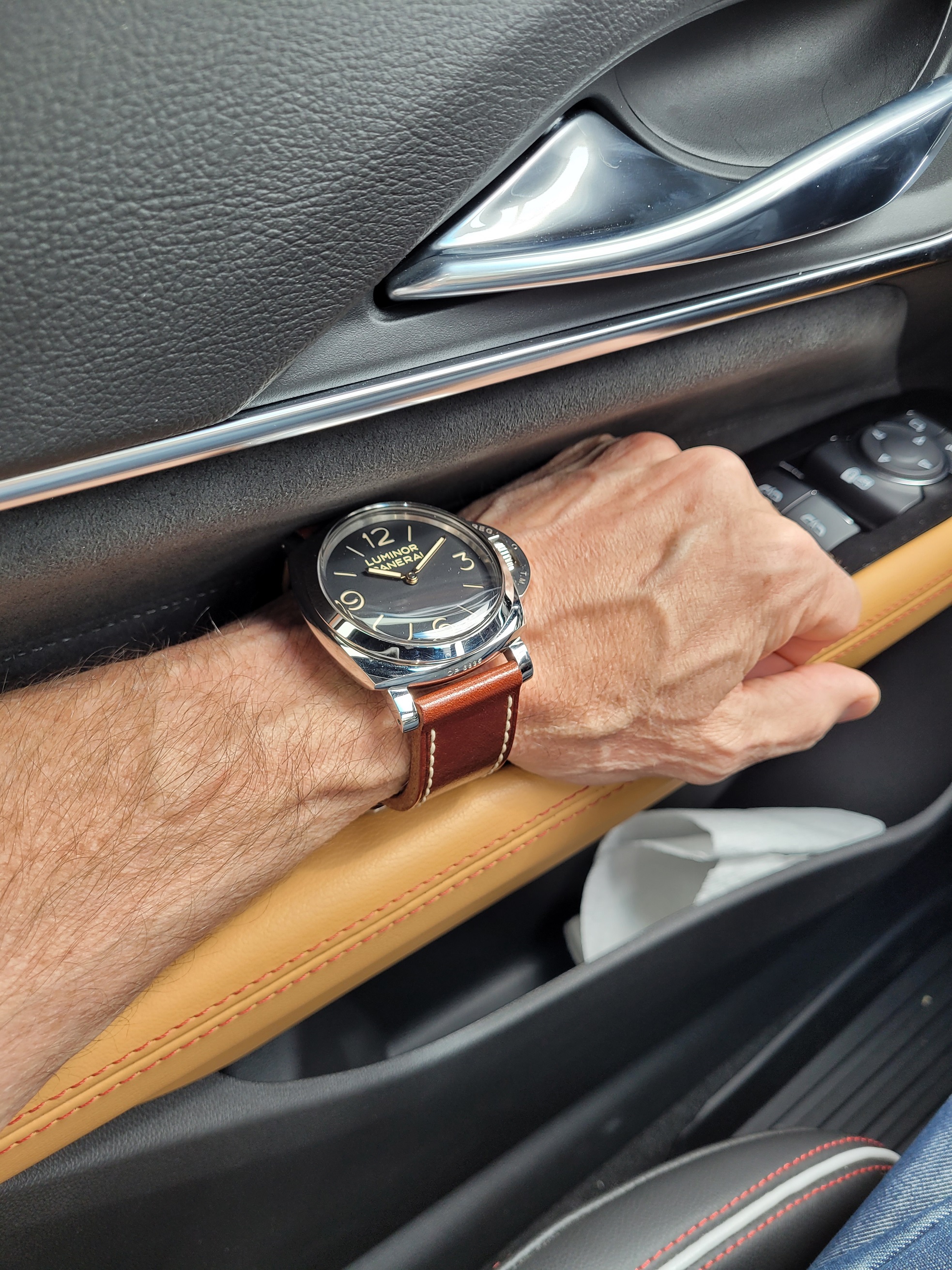 Now, here is a photo of the same watch in the CT4-V BW I briefly owned. Which allows me to highlight a great feature of the car most overlook... the sueded, soft touch door trim above the armrest. Perfect for placing your arm without fear of scratching a fine timepiece on abrasive material (y)