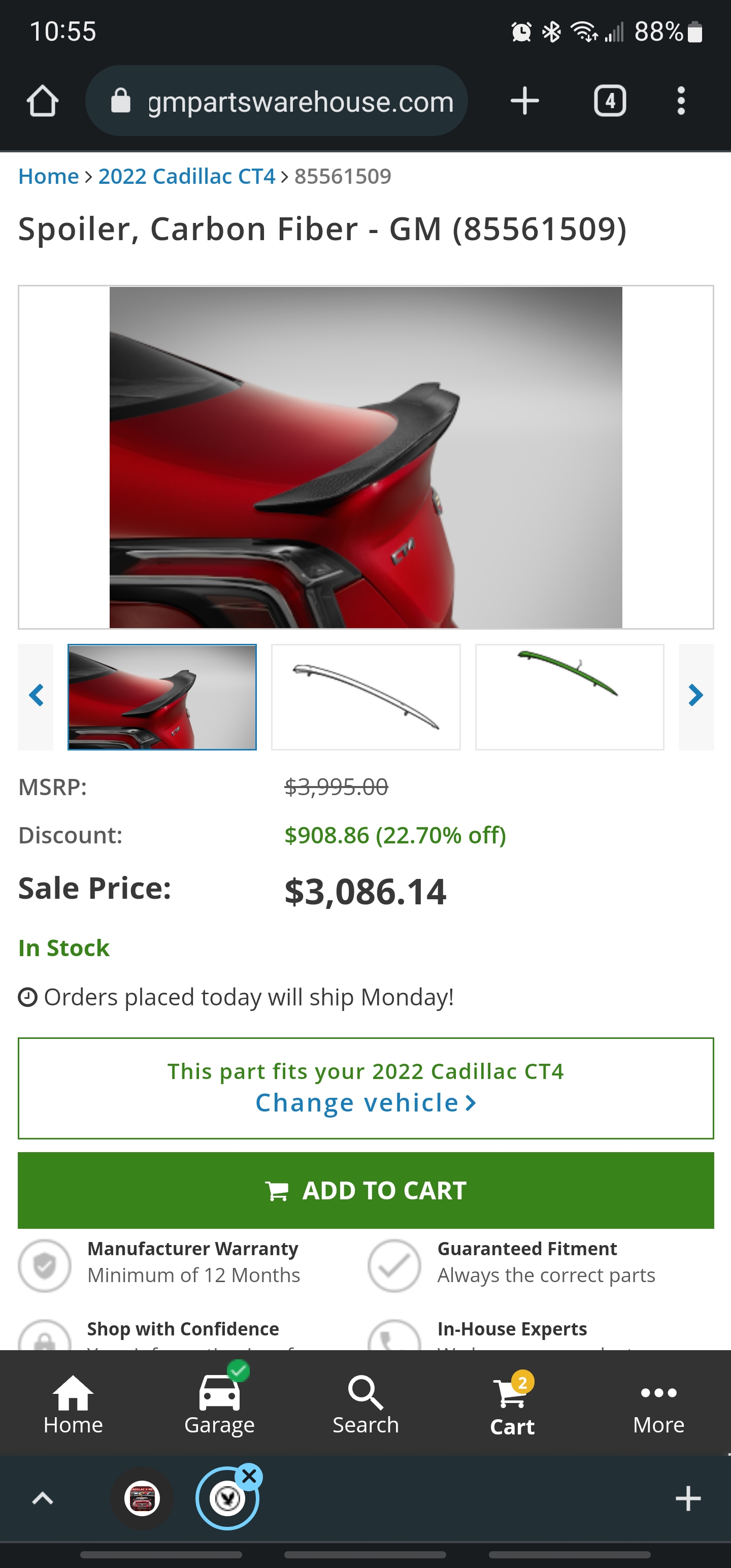 The good: I got the 4BW CF wing installed last night and it looks great!