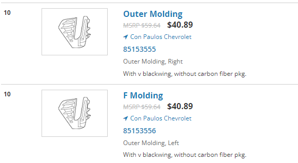 Here are the OEM carbon fibers part numbers for both the 4 & 5 Blackwing. Use a variety of online sources to check prices such as Gmpartsdirect, GMpartscorp.com, etc.