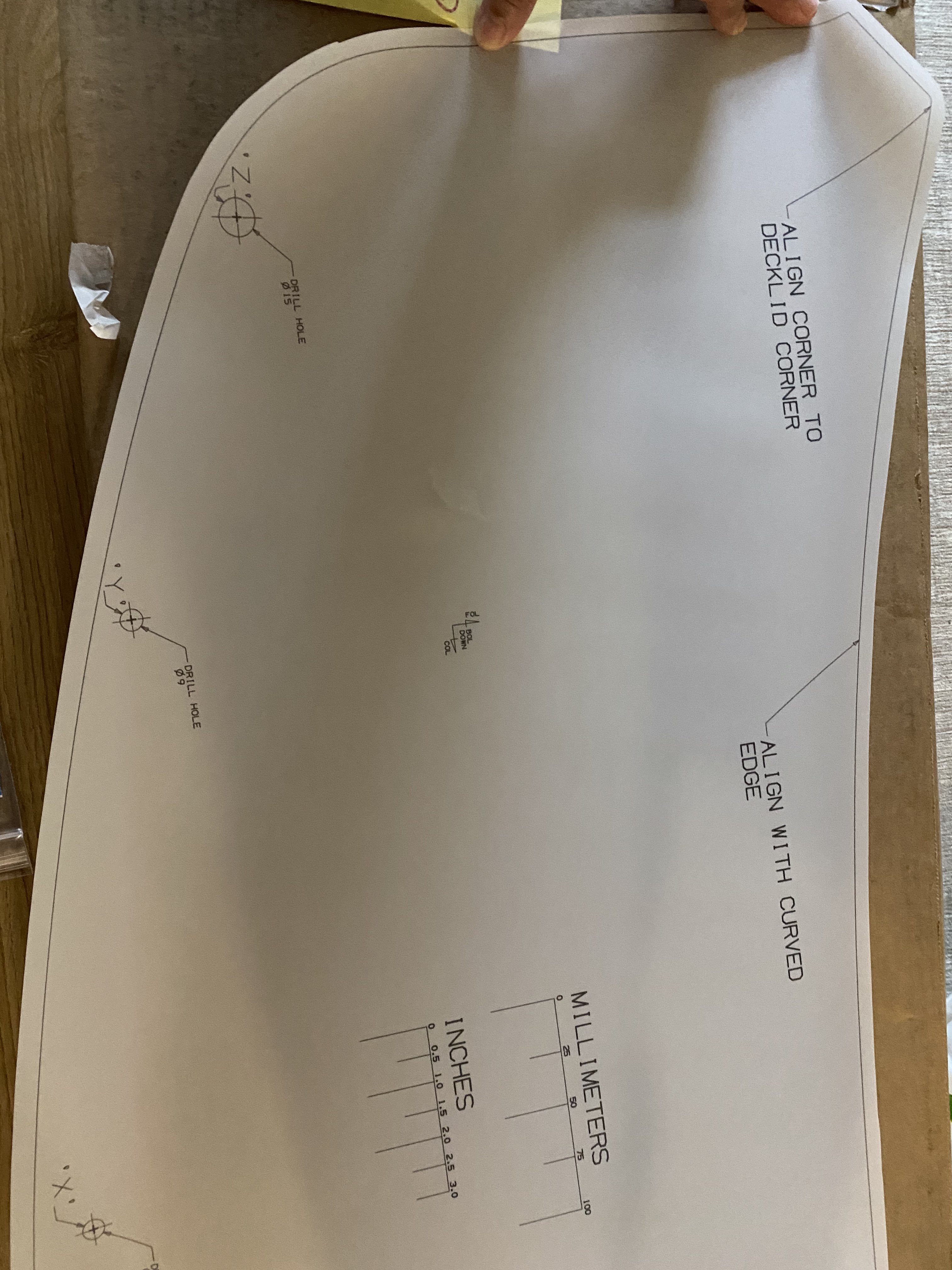 Now off to the detailer to get it wrapped. It comes with the bolts already attached and double sided tape on the other edges. It also comes with a template to put on the deck lid. I’ll talk to my detailer, maybe I’ll just have them mount it (chickening out a little).