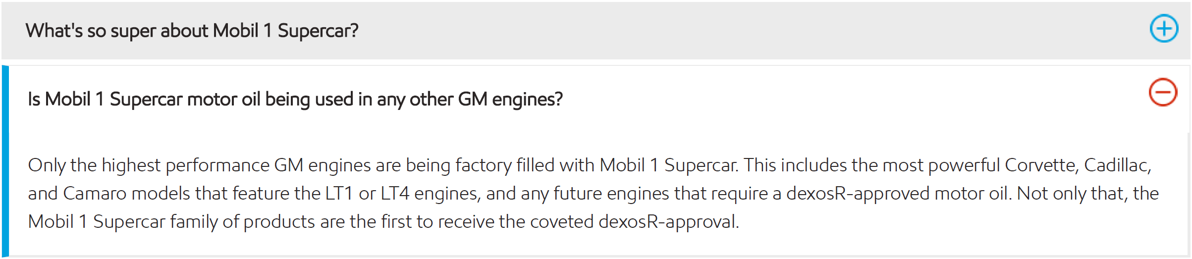 "Engine Oil 5W-30 - part #19293000". Yet, Mobil 1 claims that Cadillac performance vehicles come from the factory with Mobil 1 Supercar. Maybe they mean only the CT5V-BW.