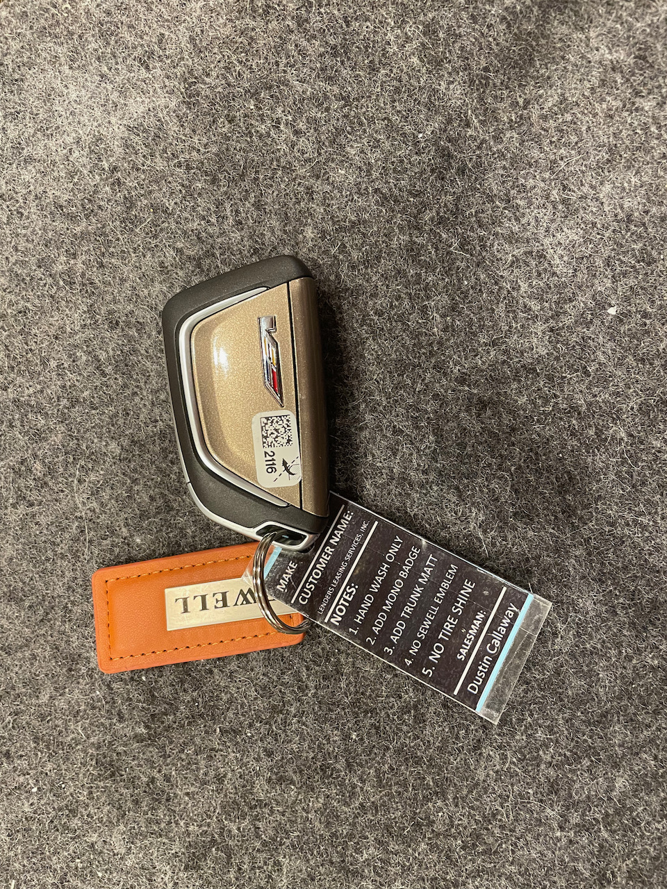 Note the prep instructions attached to the keychain. Gotta love Sewell!