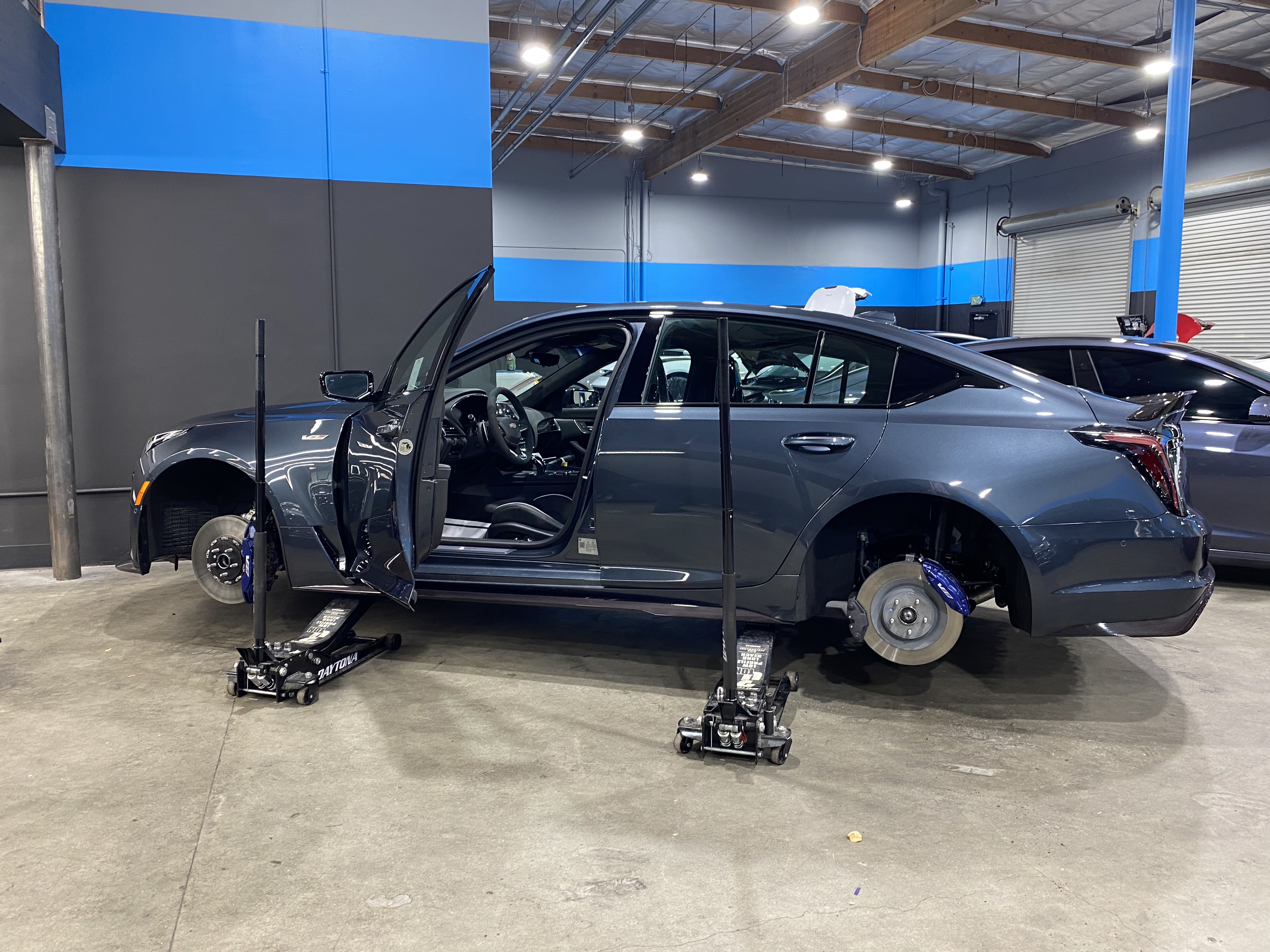 So let’s start with the “drop spindles” the CT5-V suspension is nothing like a corvette and hence forth you will be looking for lowering springs once a company comes up with a good spring rate for our cars. Still way too soon yet. Should be coming on to the market in a few months I would imagine.