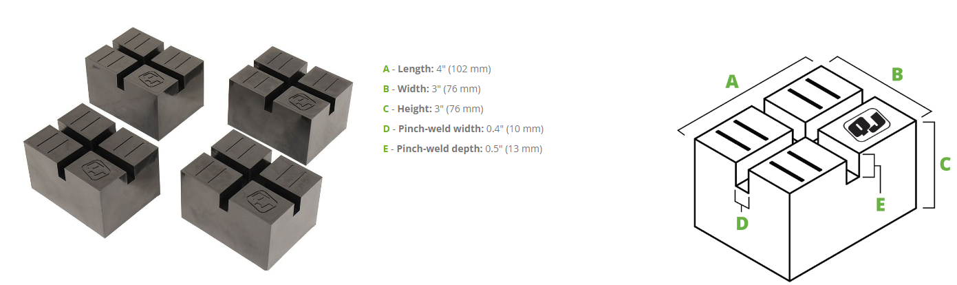From the CT4 Service Manual that was shown by @Dirkbg above, I tested those locations using a low profile jack + three hockey pucks stacked (each 3"x1" WxH) to lift the car for some wheel detailing work. I used the pucks as that were the only pads immediately available for me but a better option would be the Quickjack Pinch-Weld Blocks that @Jameson's Viggen noted he purchased for lifting his 4BW. I measured the front molding opening at the pinch weld and these Blocks would fit nicely.