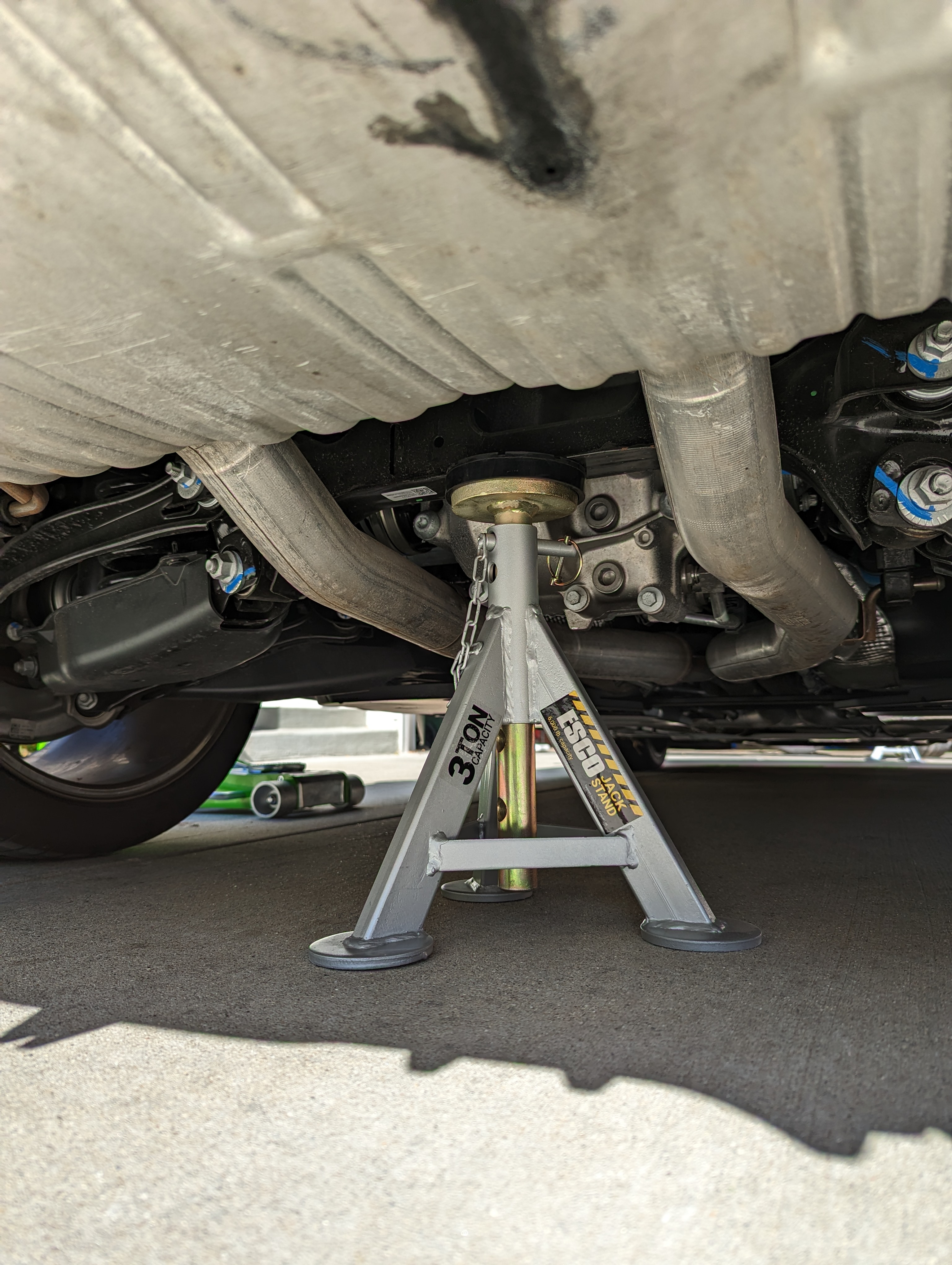 I changed my oil on Friday and used two floor jacks with the rectangular Quickjack blocks. Worked pretty well, but very limited space for the jack stands. Think I will order some of the ZL1 Addons. The oil really shoots the hell out of there and at first I missed the pan.