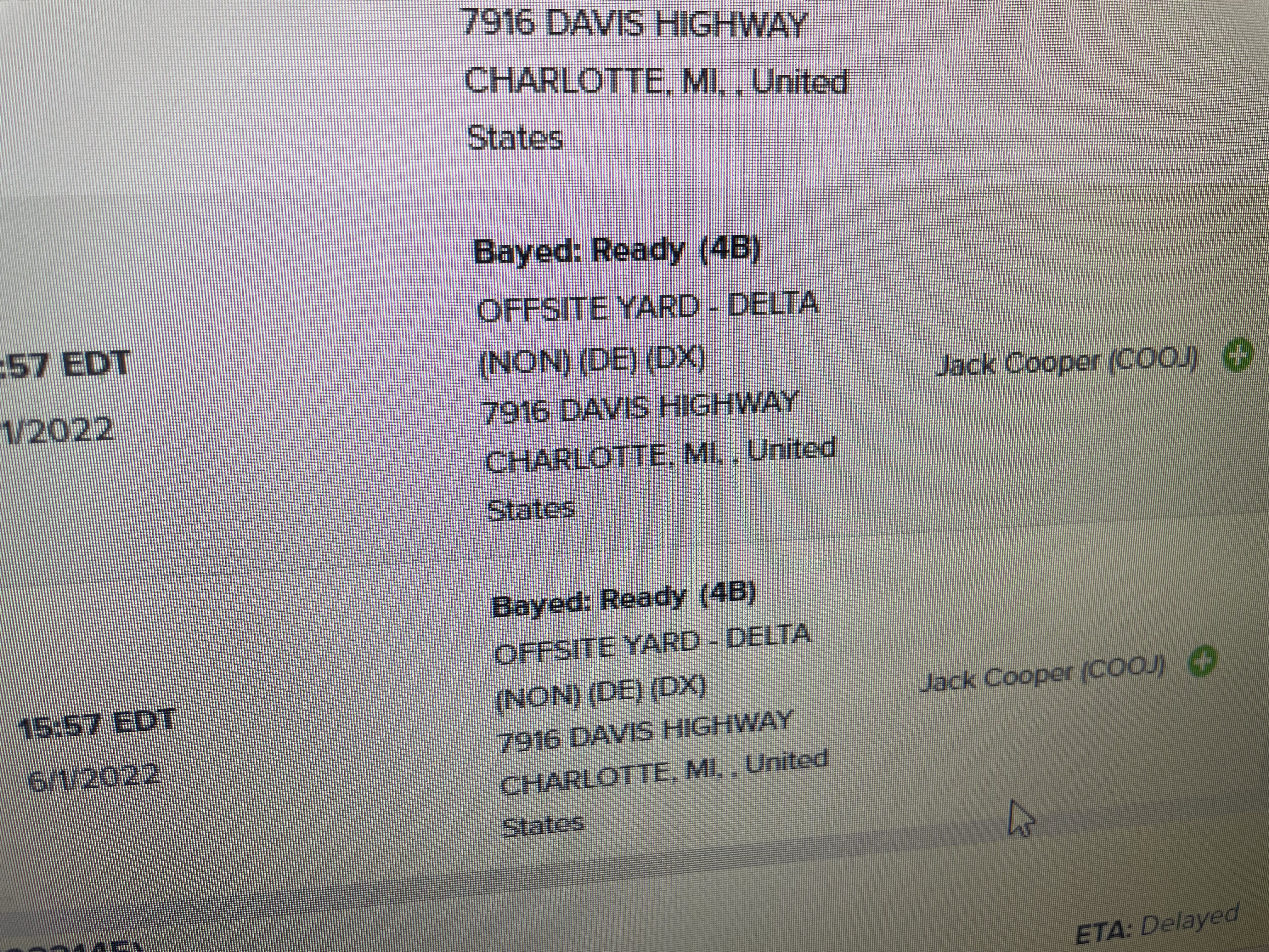 After some communications with my sales rep yesterday I got this text at the end of the day..."So the status is still delayed and pending, but it now is showing that it is "on the road" in Charlotte MI."