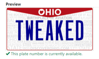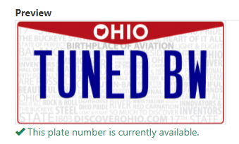 That"s a good plate, in Florida I got VBLKWNG , same here a long wait for it.I ordered VBLCWNG today. That was the best that I could find available in CA. 6-8 months for delivery! I know that they shut down production several times due to COVID and must have a backlog to catch up on.