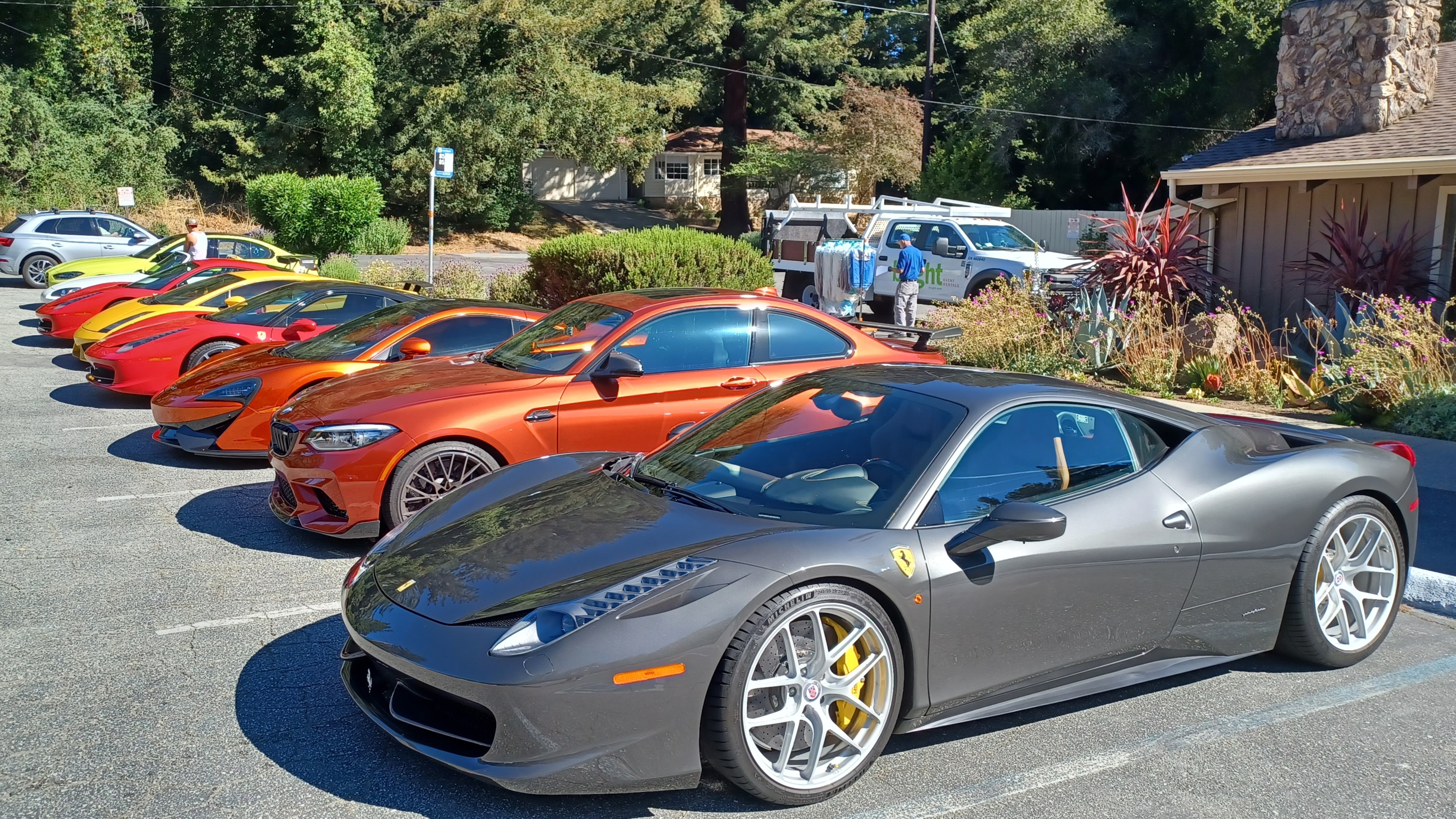 I'm a sucker for 930s and 964s. Those are gorgeous. Your BW is also very good looking with that tan interior.Blackwing at breakfast. A couple of old VWs parked beside it. The Ferraris are off screen right, lol