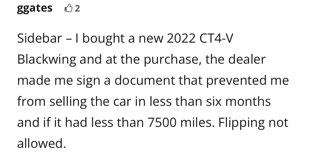 I’m not a lawyer, but I can’t see how this could be legally binding. I can’t think of any other product where this would be applied. It’s far different from a stock option that is owned by a company. A person with an outright title can do as they please. But, I can’t believe a dealer would even propose such a thing, it’s outrageous.
