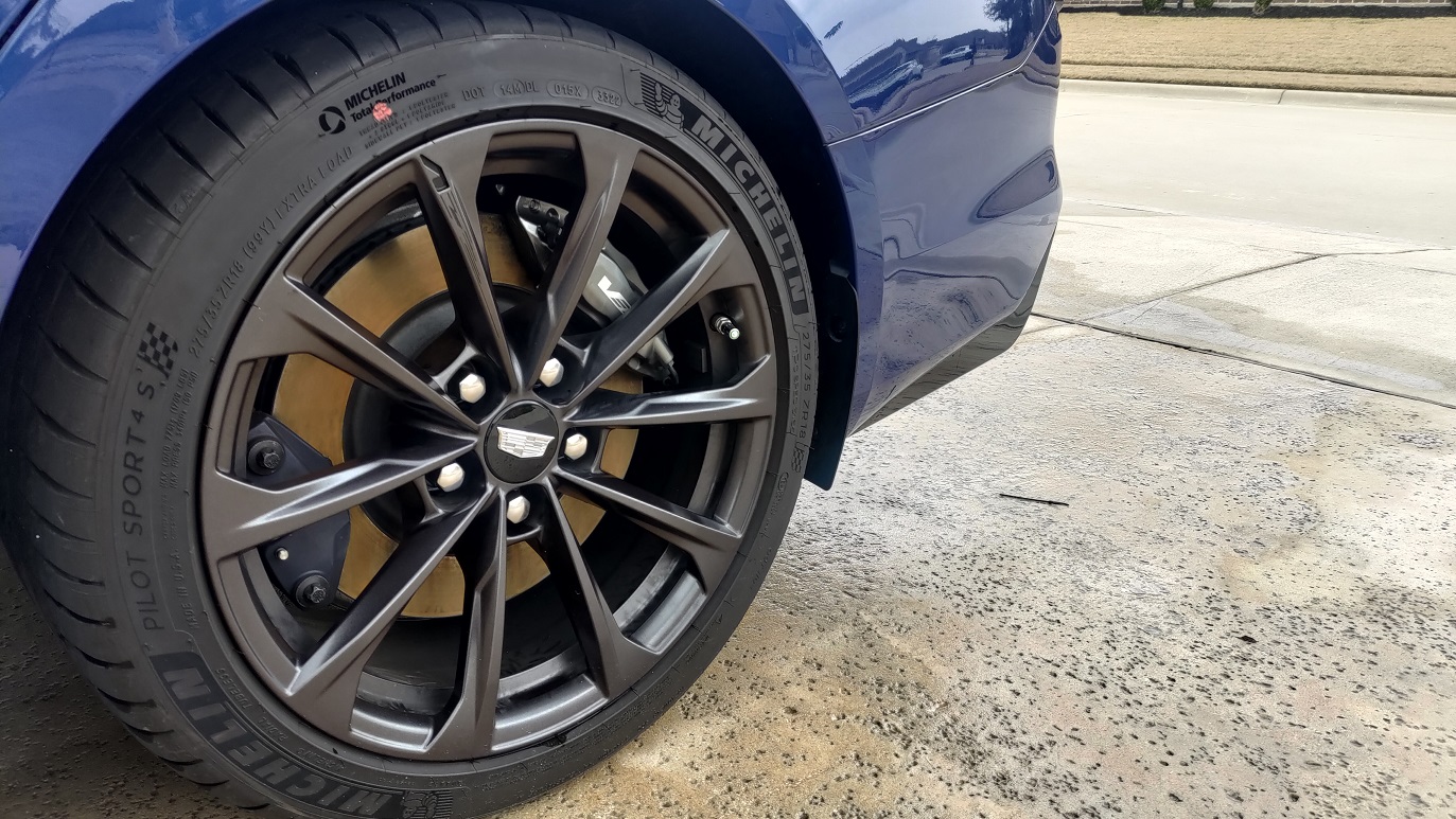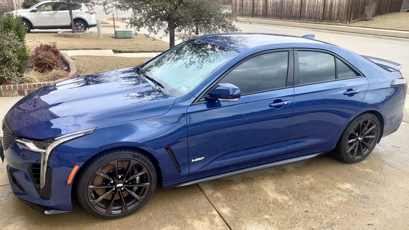 For anyone on the fence about ordering The Original Carbon Guards for the CT4, here are some pictures. Install was a bit nerve wracking because of the double sided tape and how sticky it was once it was tacked, but I really like the overall look of them with both the front and rear installed. My only complaint is that the edges aren't really sealed, so they look matte and unfinished. However, normal people just looking at the car probably wouldn't even notice. I also included a picture of the black plastic fronts that came installed from the factory for comparison.