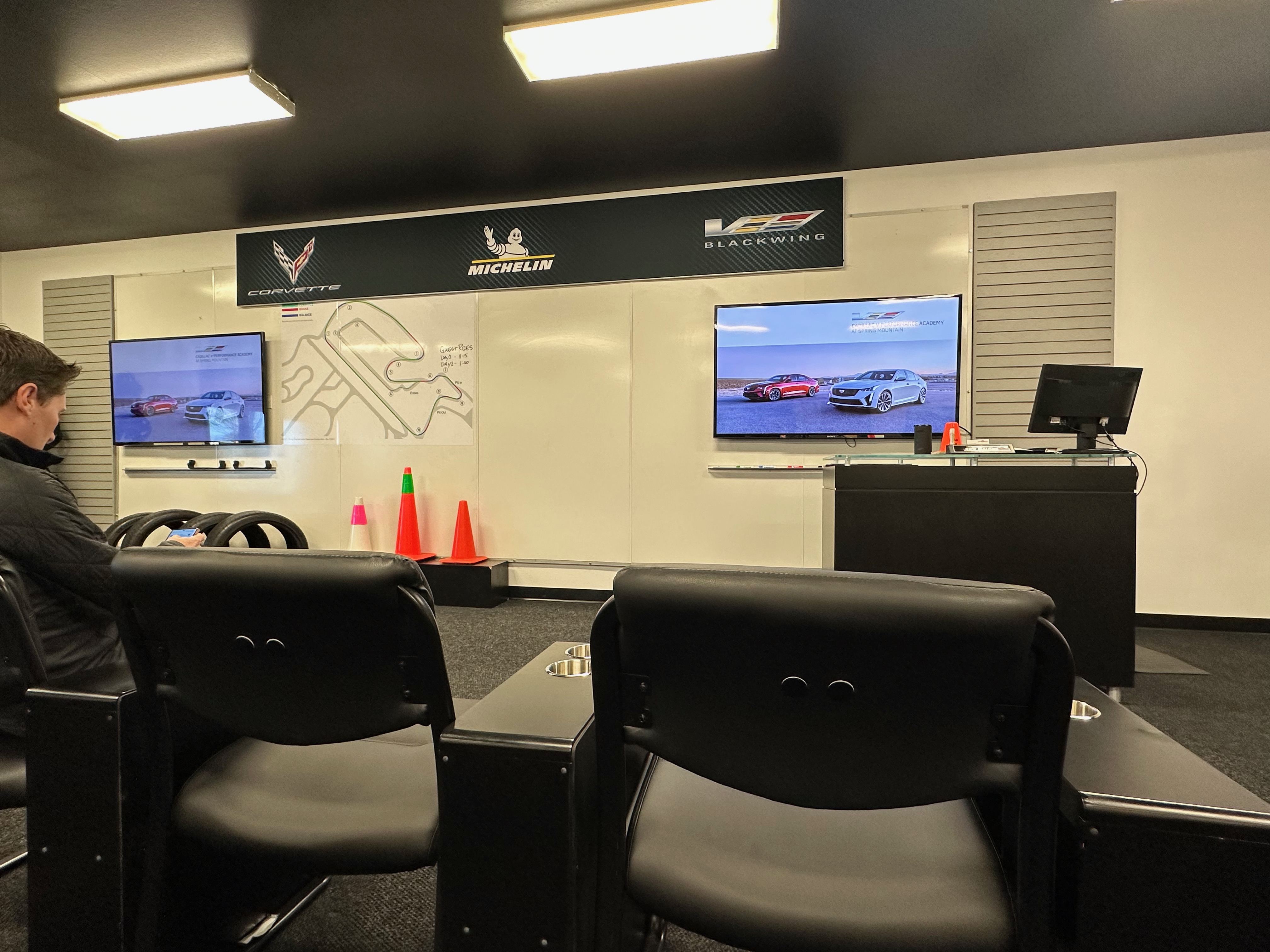After breakfast headed over to the White classroom on the east of the complex. The complex has 9.1 miles of track that can be reconfigured into more than 50 different tracks. We were on the East loop for the two days. Class room was comfortable, good seating, cup holders and not too crowded with 16 students in the class. Two did not make it due to flight cancellations I believe. I'm combining day 1 and 2 below for ease since I did not copy the agenda.