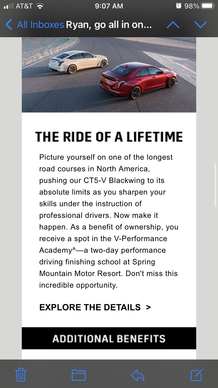 I did receive an information packet from them but it was after I bought the Z06 in 2016. I did not receive anything after I bought the ATS-V in 2018 nor have I yet on this car. Maybe that is a Corvette School thing.