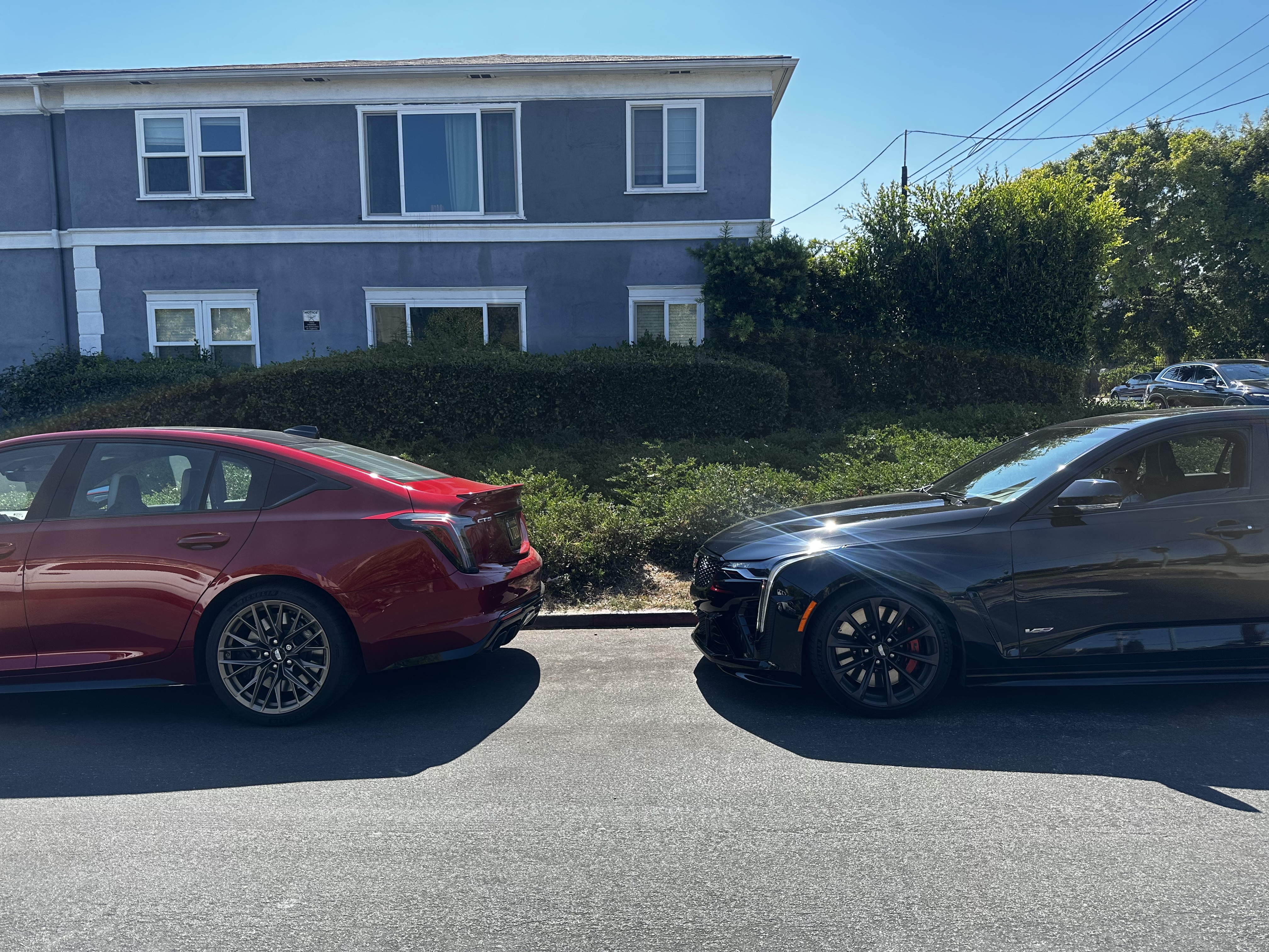 Just saw TWO within 30 seconds going opposite directions. An electric blue ct5 and a murdered out ct4 at the pa turnpike/309 interchange near Philly. As typical, I was in our Honda Civic with some bicycles hanging off the back definitely looking like I'd be a blacking owner. Yet to see a single one in my blackwing 😂