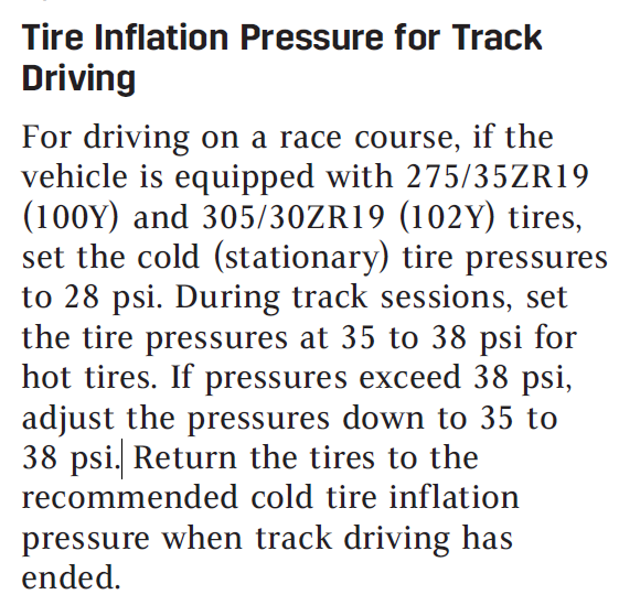 FYI(Part 3) - Page 372 gives conflicting info on "track event" tire pressure guidance.