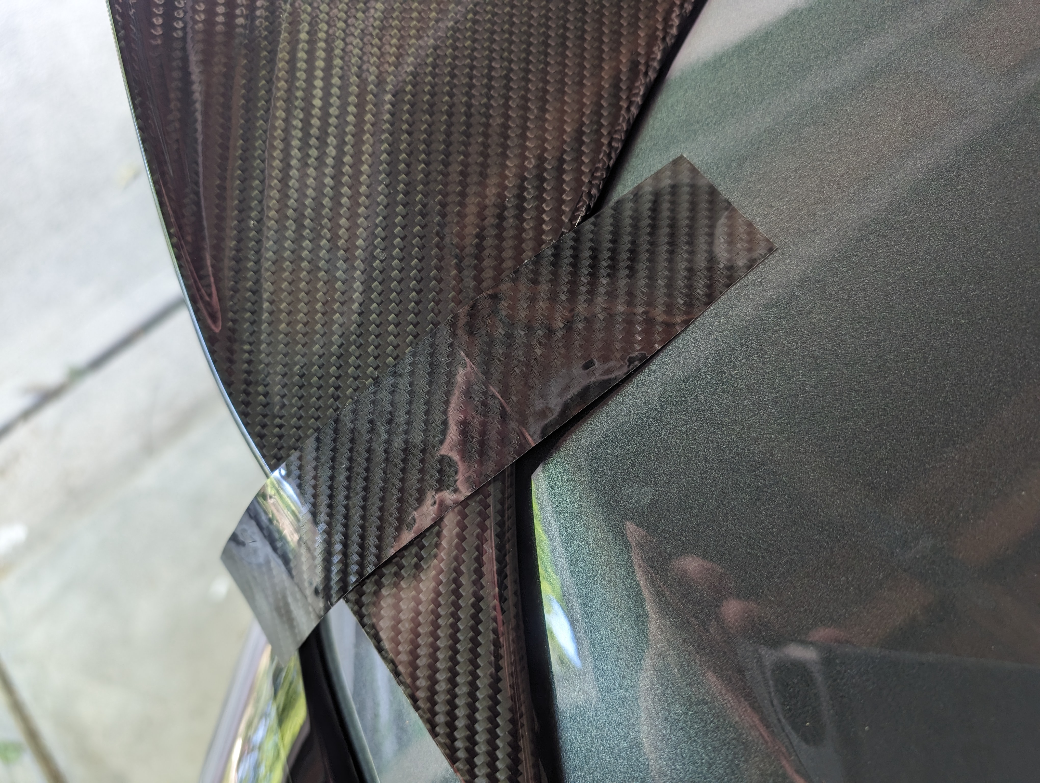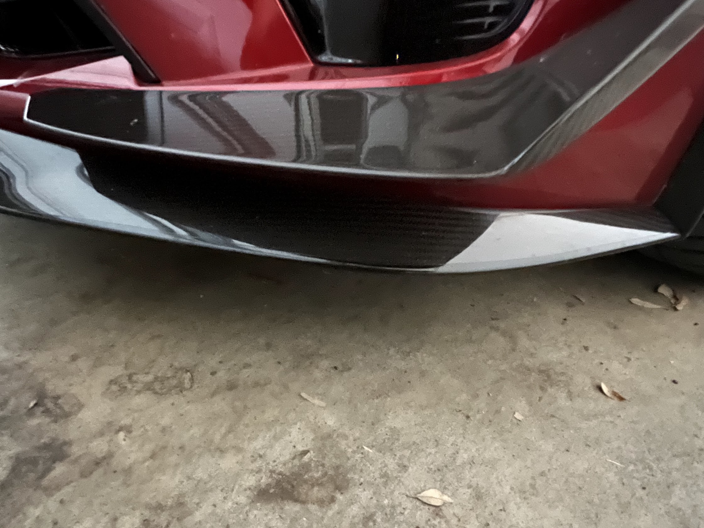 There is also a CF looking film material that was shown to us at the detailer who did my PPF and ceramic that you might be able to use. I don't recall the manufacturer but they said it's expensive high end stuff that's not available to the general public. I can get the name if you're interested, but you'll likely have to find a detailer that has it and is willing to sell a piece or install it for you. I kept a small snip they had and here's a photo against my spoiler. We all thought it would be great for anyone wanting a CF roof look. I think it was StekNot a good day. I've been able to avoid this on 2 other cars, but I finally manage to curb my splitter. :-(