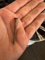 Sucks! I thought that crap only happens to me? Only God knows how that 2" screw got popped up vertical as the tire came around?I had this taken out of my tire. I was like damn how did that even end up at an angle to sink straight through the tread to the top of the screw, which it had done.