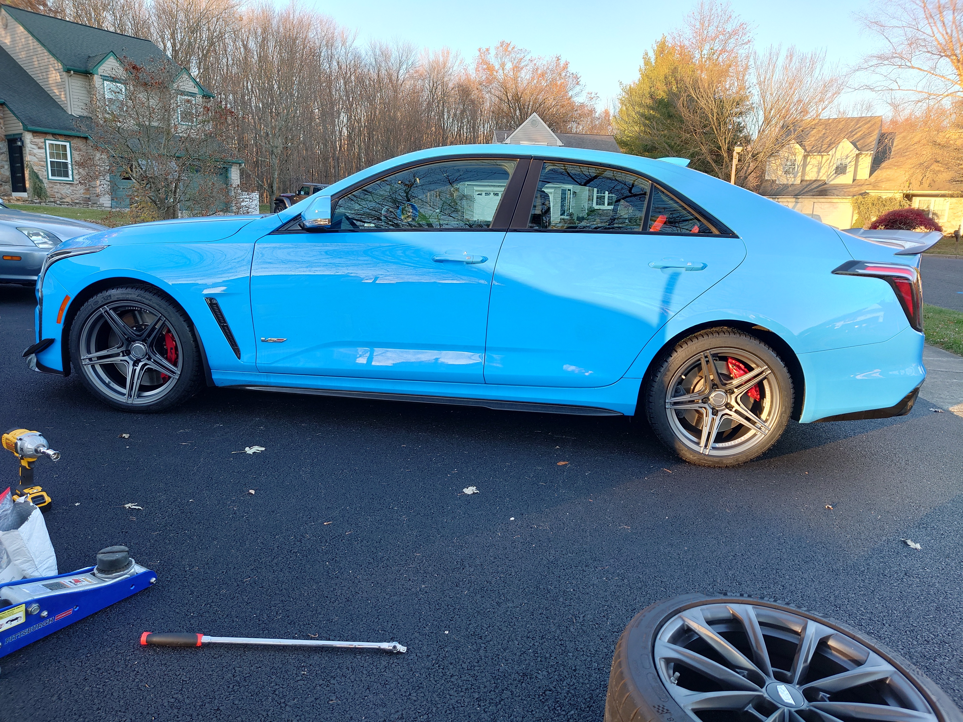 I put my winters on over the weekend, having mostly copied Nofar's setup (same Forged One Competition FF05 wheels in 18x9.5 +20mm front, 18x9.5 +33mm rear, but with 255/35R-18 Michelin Pilot Alpin tires on all four corners).