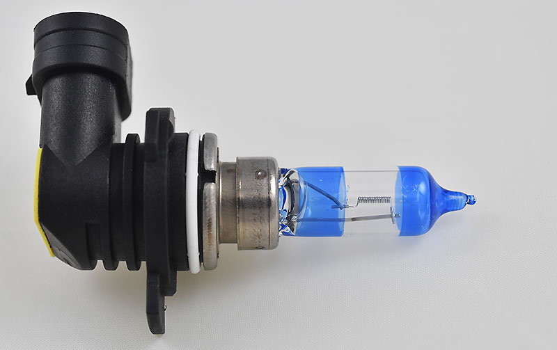 In the closeup, below, of a Silverstar Ultra, note the unusual blue bands at the front and rear sections of the bulb. Ryan DeDecker, Product Marketing Manager at Sylvania Automotive, told us in an email, “There are a couple of reasons for the coating and especially its location on the bulb. The blue tint acts as a filter, allowing light at the blue end of the light spectrum to pass through, which creates the “whiter” light. This whiter light is used more at the side of the roads for reflective items like street signs and road hazards. By keeping the center area (in front of the filament ) free of the coating, the full spectrum of light to pass through, creating greater luminance than would a fully-coated headlight. The greater luminance translates to more light output down the road and that makes the Silverstar ULTRA our farthest downroad headlight.”